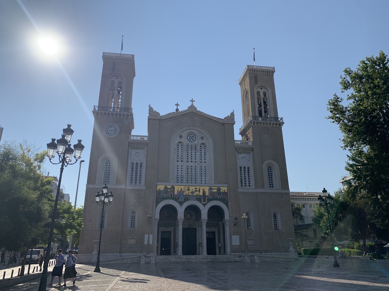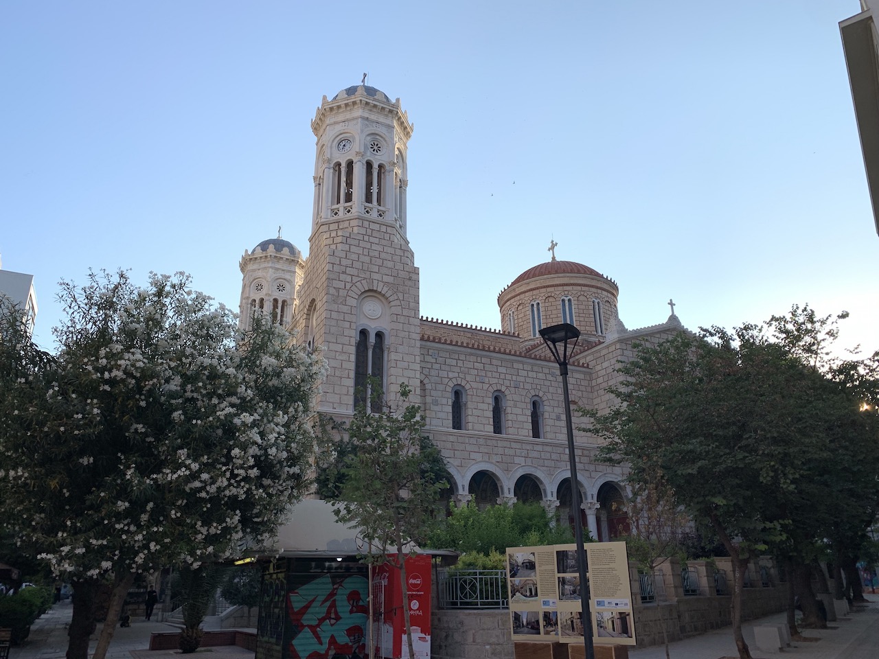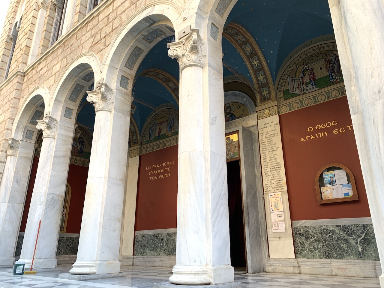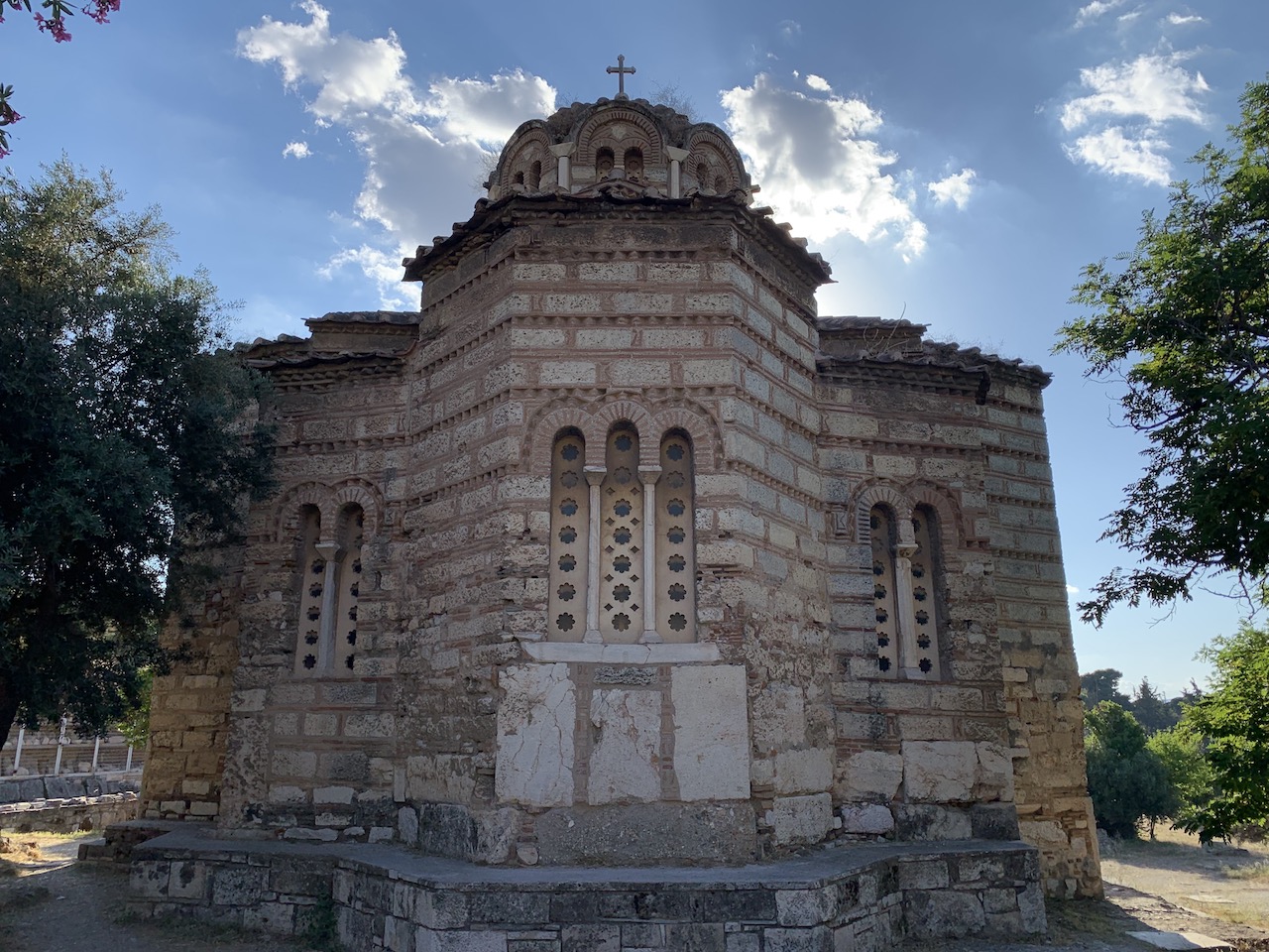 古雅典市集內也有一個外觀保留很完整的東正教教堂,雖然內部壁畫已斑駁,但可見那柱式的柱頭長得就是像盛開的花草般,應該就是科林斯柱式了!