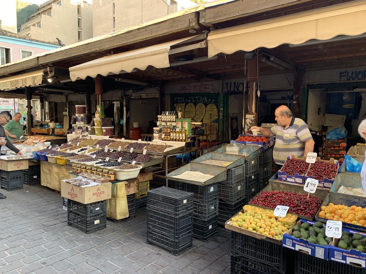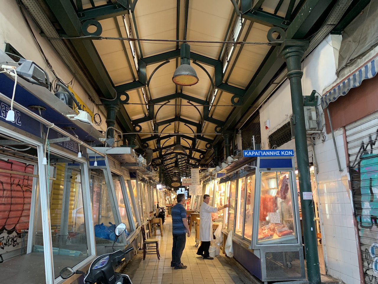 雅典中央市場(Central Municipal Athens Market),如果說要深入了解當地的食材以及飲食習慣,走一趟這肯沒錯,旅行時我喜歡逛當地市場,因為總是可以在傳統市場裡找到樂趣,拋開自己是觀光客的感覺貼近居民的生活模式,可惜的是這次我最後一天才有時間去市場晃晃大概是一大清早吧!攤販們才正開始端出自己的貨色,卡車也來來回回的運送~只好向市場揮揮手去別處繞繞了!
