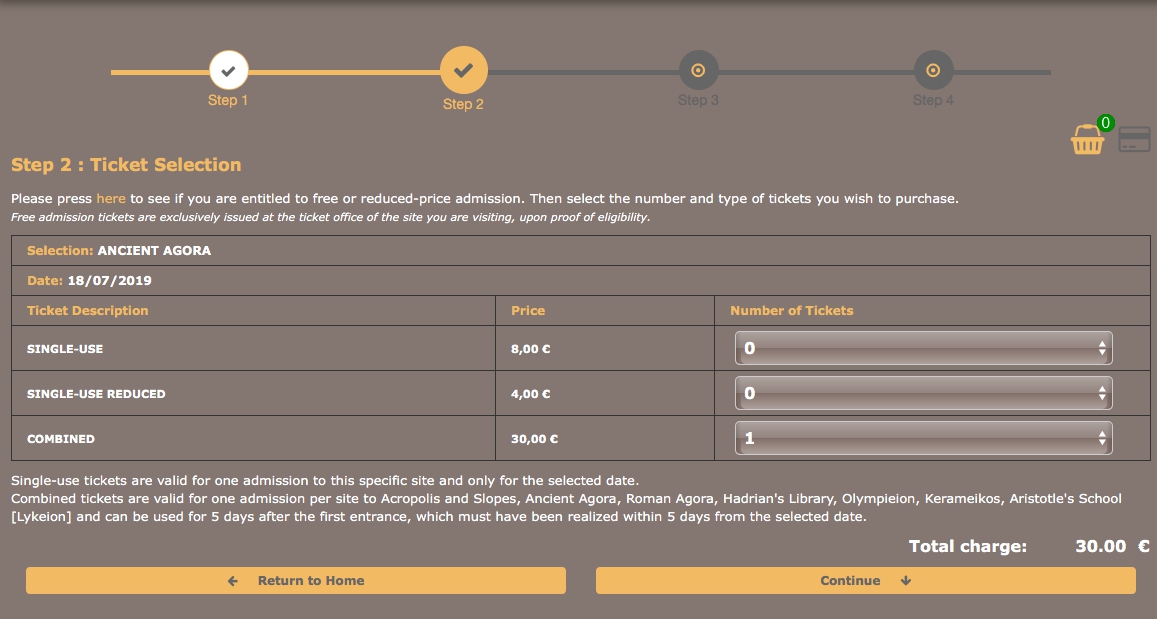 簡易教學:到網站後先切換語言EN-選擇visitors-ATTICA(如下圖上)再右邊那格隨便選一個地方,填上第一天預計參觀的日期,時間隨意選不影響(套票從所選日起有五天參觀期限)-選combined票價30歐(如下圖下)-下一步填email及國家-刷卡即完成(若只想參觀某一景點就要特別選擇好景點名字跟single use的票,可對照上圖地圖提供的景點英文名稱