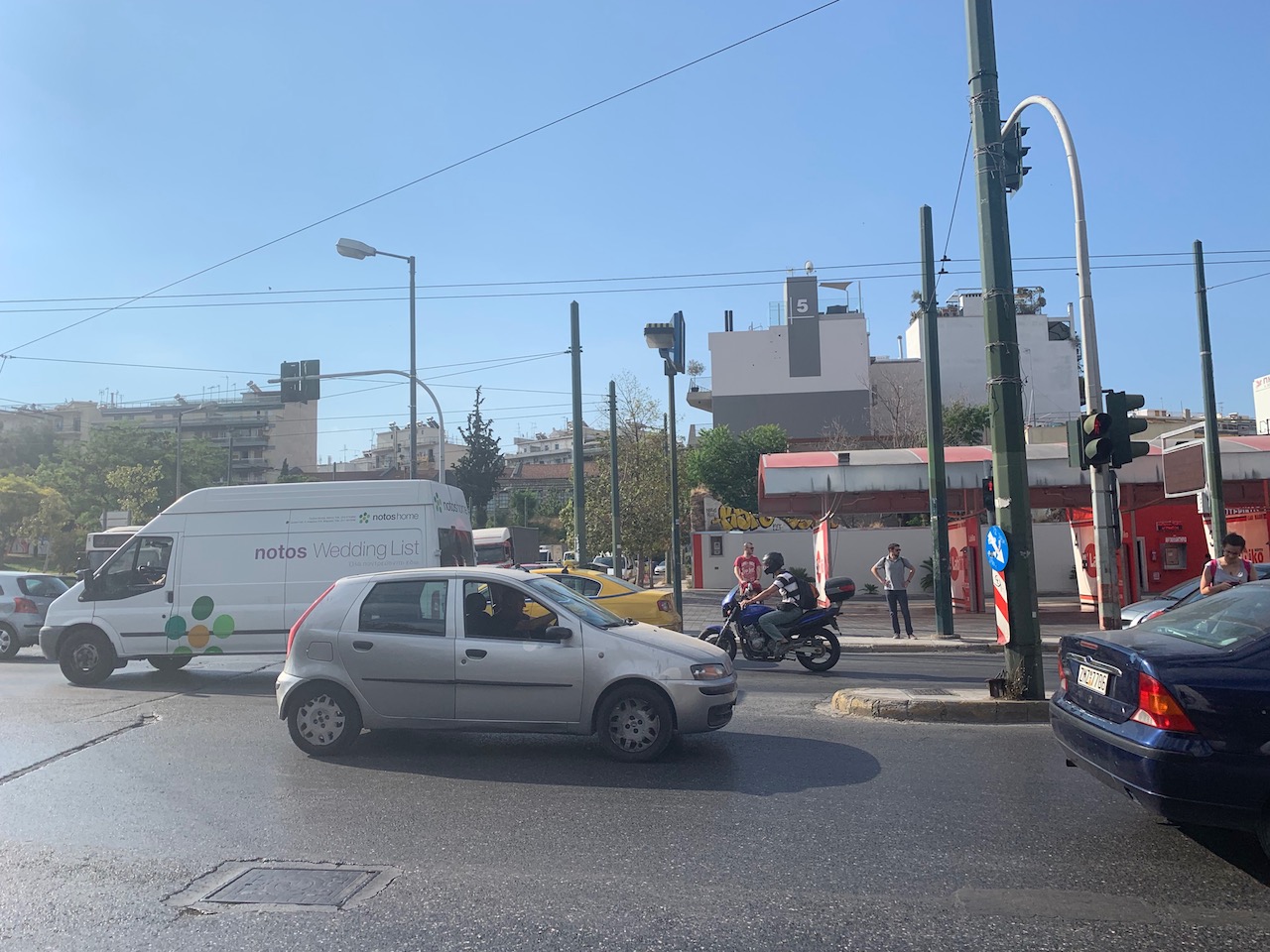 回到hostel放下行囊後,第一站我出發去凱拉米克斯(Kerameikos),走在街道上讓我感覺很親切,因為行車方向與台灣相同又有好多小黃趴趴走~~~不過過馬路時就要特別留意一點,他們的斑馬線常常都會消失,號誌燈也都有點參考用的感覺!