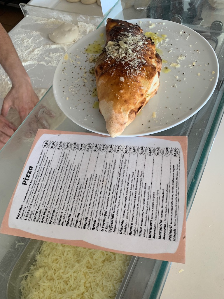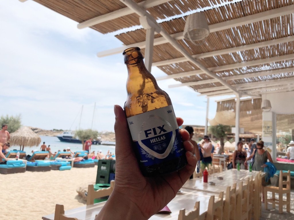 Nikos TAVERN是民宿老闆推薦的海鮮餐廳,吃上一條新鮮現烤的魚真是滿足,餐後店員送上中間那壺酒…….實在是太可怕了哈哈!味道不太記得無法形容,只記得我們是玩遊戲輸得當懲罰喝掉哈哈