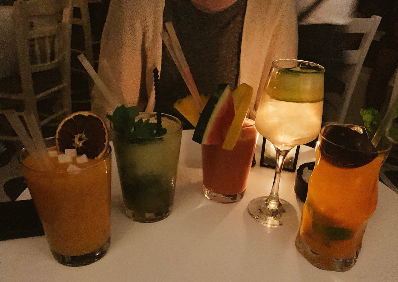 最後一夜的米島夜晚,我們一起待在小酒吧喝上一杯慶祝旅行順利也期待下次團聚,不過這些看似美美的調酒只有兩杯調酒比較深得我們的心,其他就……….