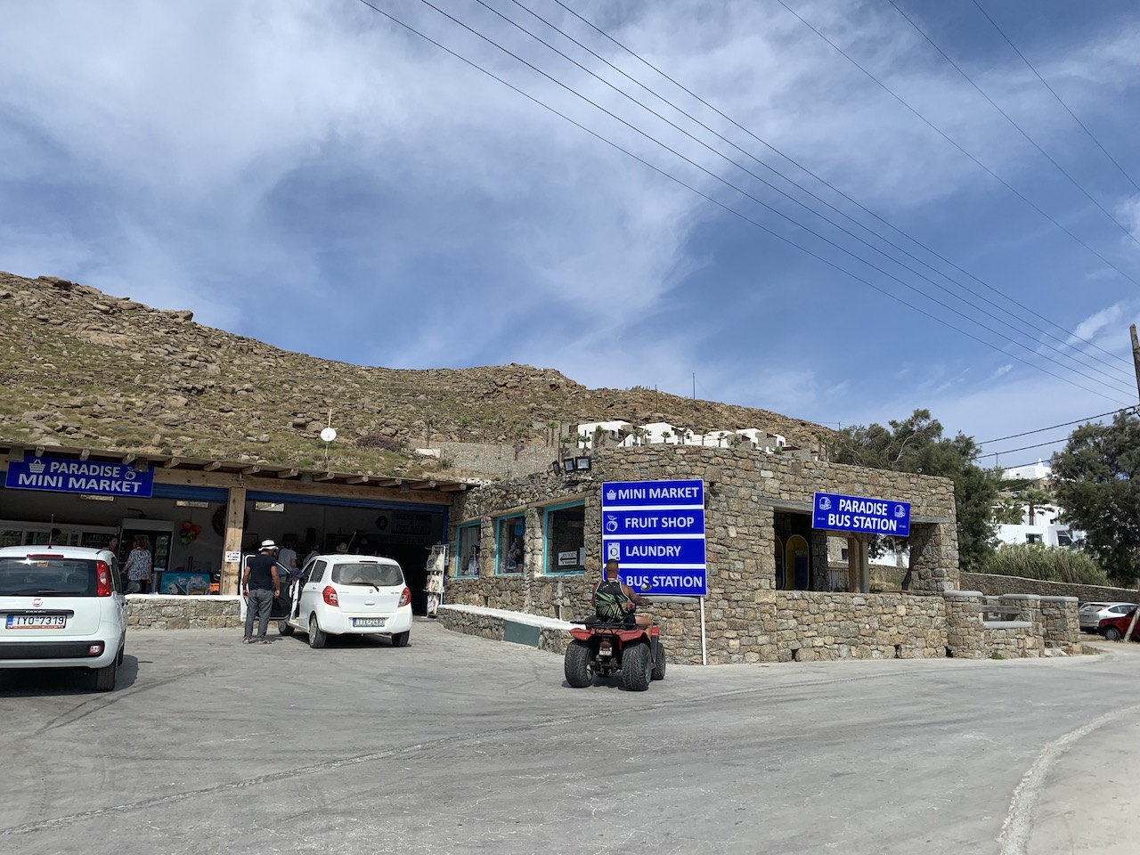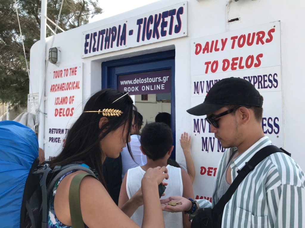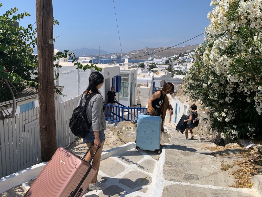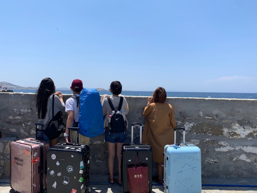 當然,二話不說下船後就是先去存放行李囉!只不過在米島就沒有帥哥們的幫忙了~只好派出二頭肌們!!!