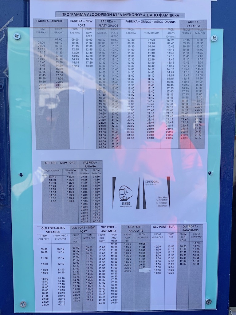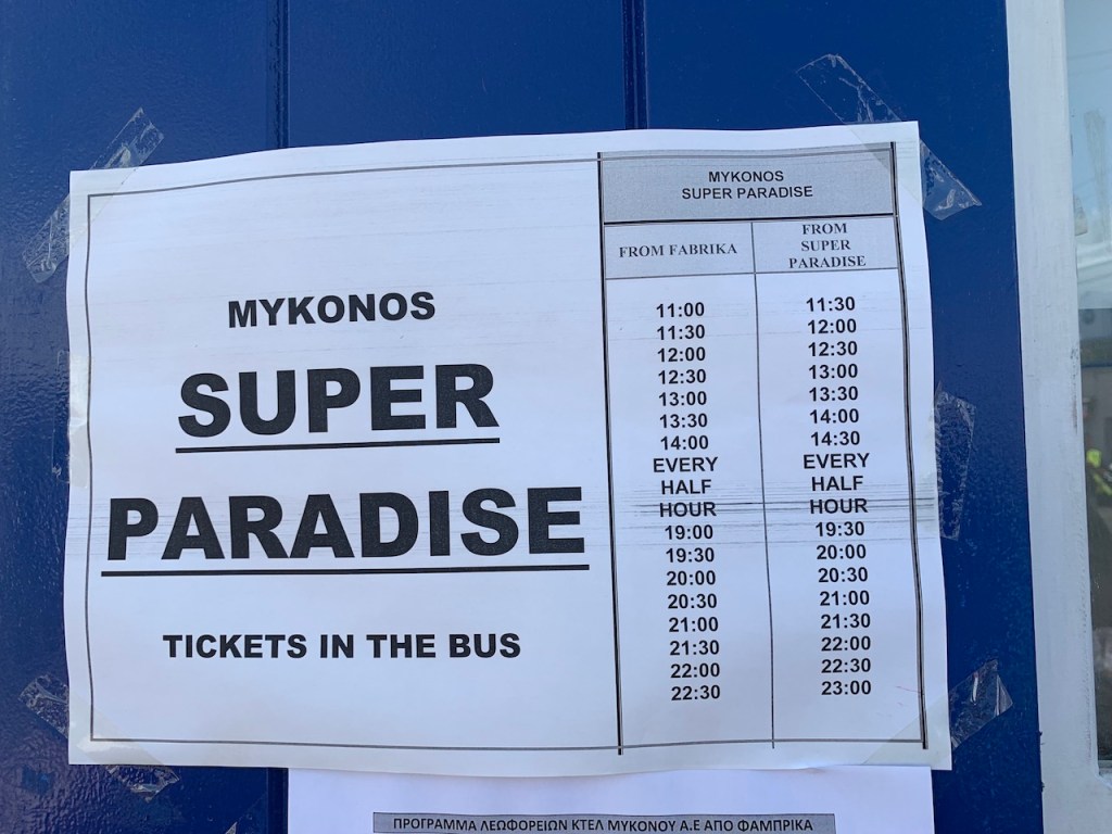 這裡有去各個不同地方的時刻表及票價,像是去天堂海灘的時刻表最早是07:15接著是09:15/10:15/10:45/11:15…….班次很多很多,票價是1.8歐,可以在這就買好回程票比較方便,而從Paradise Beach回程的車到凌晨都還有呢!