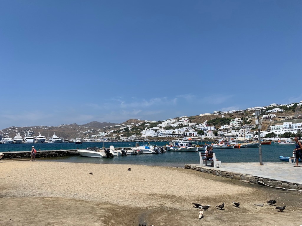 叭~~抵達Mykonos了!領完行李下船後拍下這滿是人潮的畫面,覺得很療癒,比起大船人顯得如此渺小!
