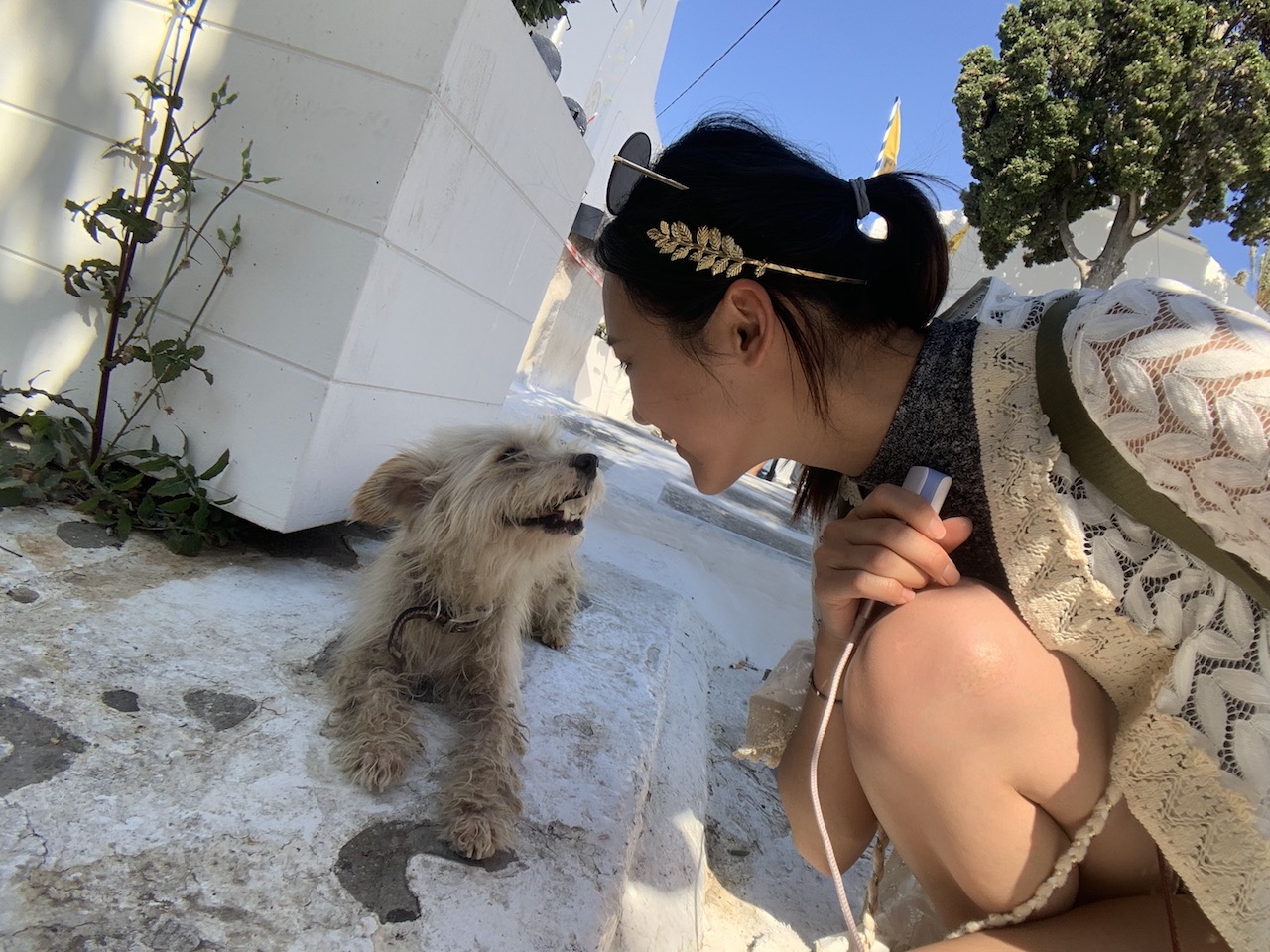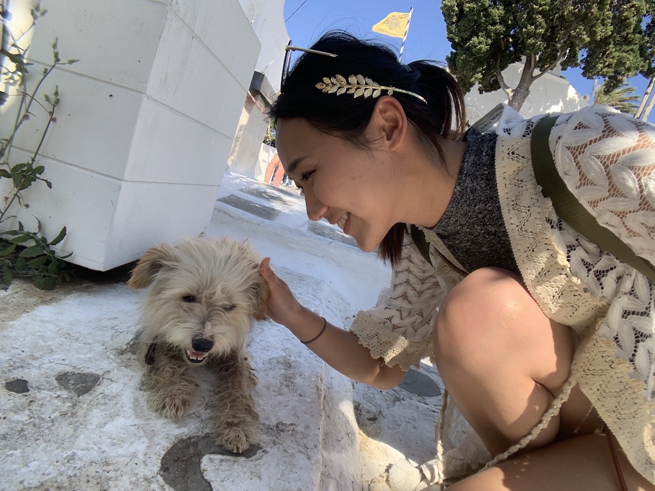 這趟希臘行走在路上9成時間都是遇到貓貓,終於在走去看風車的路上,遇見這隻趴在路邊休息又會笑的狗狗,超融化的好想抱回家喔!
