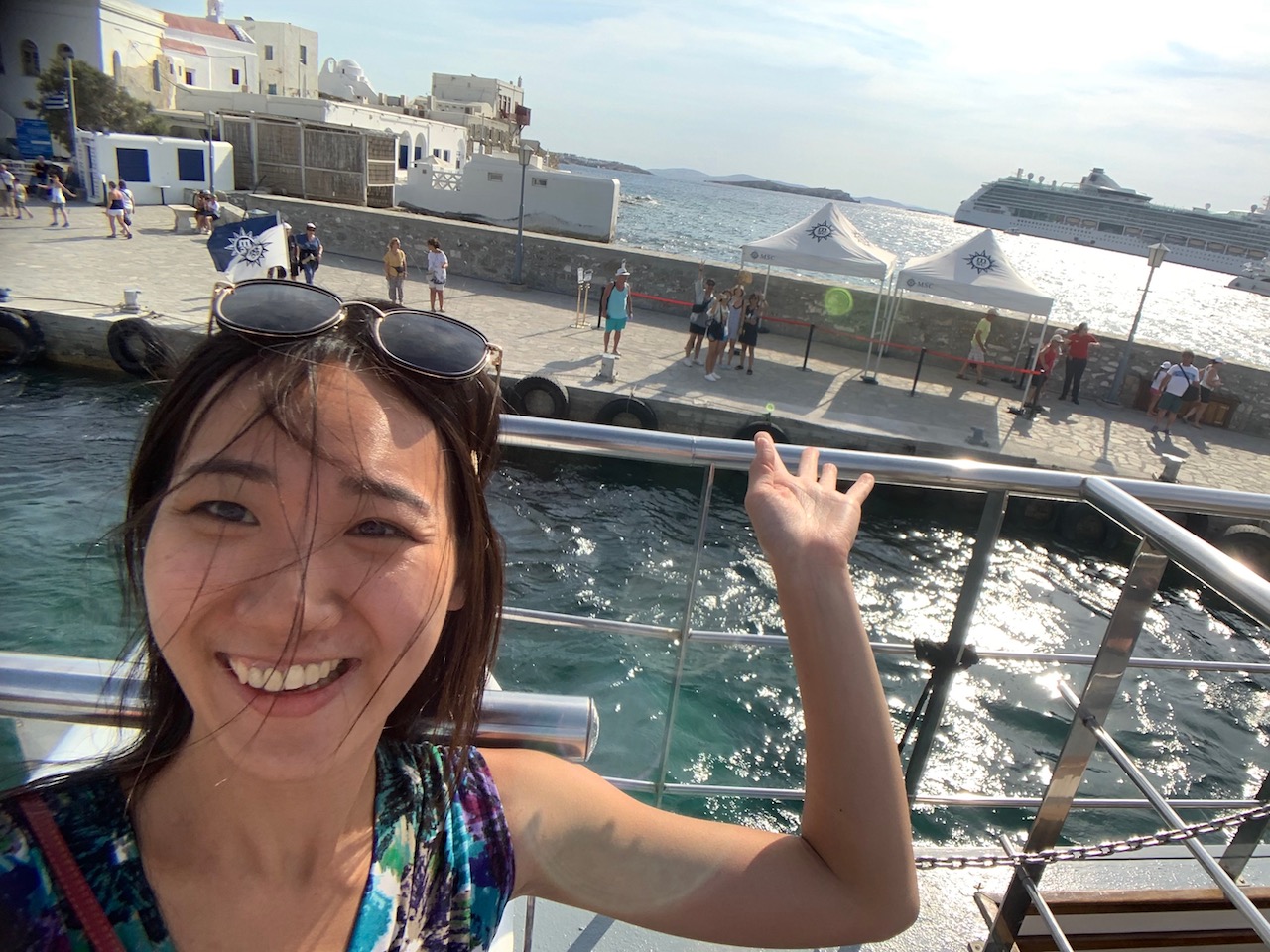 時間過好快呀!要轉戰希臘行的第二個小島了,這次選擇從Santorini搭乘Seajet到Mykonos,航行時間約3小時,其實時間一下子就過完了而且容易暈船的我可是一點感覺都沒有呢!