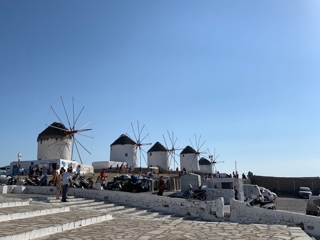 來到米島出名的風車群Windmills of Kato Mili,跟島上顏色一樣,白色的外牆配上小小的窗戶,看上去很像一隻隻肥胖的蠟筆。
