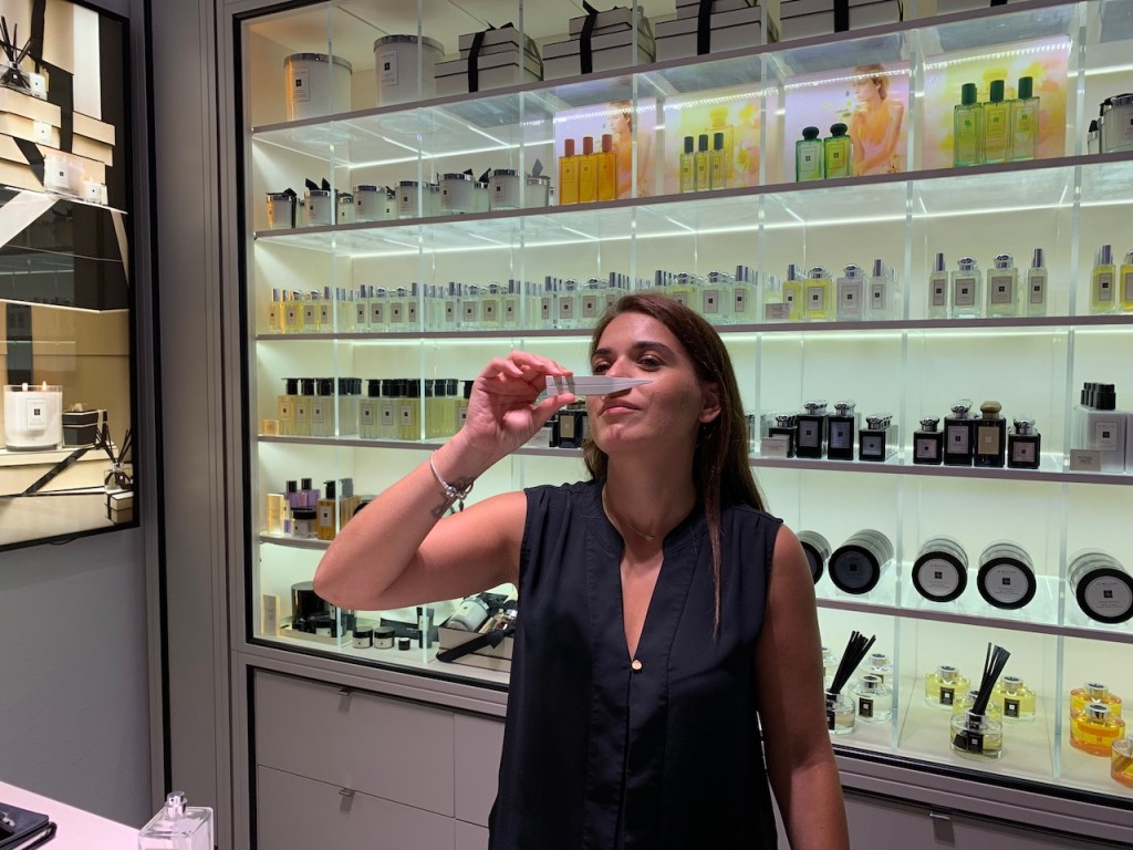 遇上這位超可愛的店員,感覺是她自己創的銷售方式,很親切又很專業,拿上兩張試聞的香水紙,由她的混搭即把紙凹成像Y字狀,可以讓鼻子一次有兩種香水的享受!當然朋友就被說服買單囉!在這間百貨也可以買到PURE GREEK OLIVE的產品,自己帶了日夜的臉部乳液,覺得蠻好吸收的!