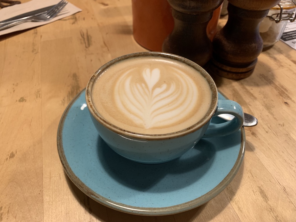卡布奇諾(Cappuccino)則有美麗的拉花,綿密的奶泡為咖啡大大加分,除了一般牛奶的選擇外,店內亦有燕麥奶 (Oat milk)、杏仁奶 (Almond milk)、豆漿 (Soya milk)可作替代。