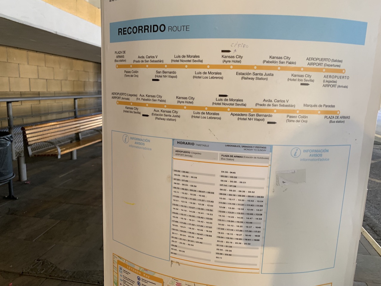 首先來說說交通吧!從抵達入境大廳後沿著City bus的指標,抵達公車區找到機場線(LINEA AEROPUERTO)站牌就是它囉!單程票4歐/來回票6歐,搭乘時間約25分鐘即可抵達市區火車站,很方便又快速!