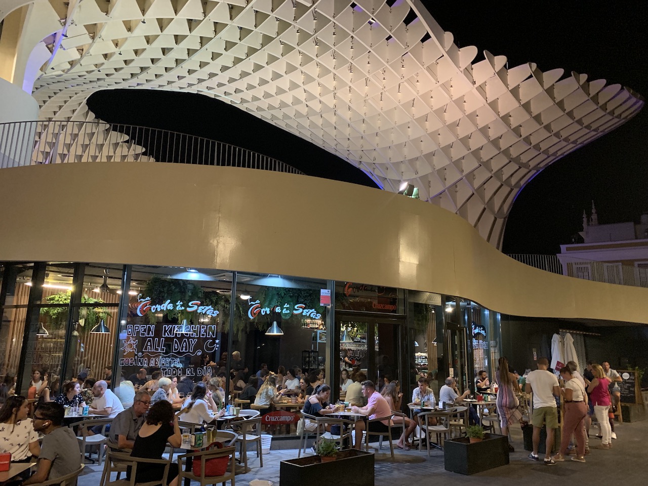 是座巨大的木建築,像是蘑菇又像是鳥巢般,流線形的設計為城市增了一絲不同的氛圍,陽傘下有餐廳酒吧,沿著樓梯爬至上層是一處寬闊的廣場,適合三五好友休憩、小朋友奔跑,再繼續往上層走則會有小酒吧以及人行步道可以眺望塞維利亞!登上頂端以及參觀博物館皆需購票,此次沒親自走一圈,只好附上官網給需要的人囉!