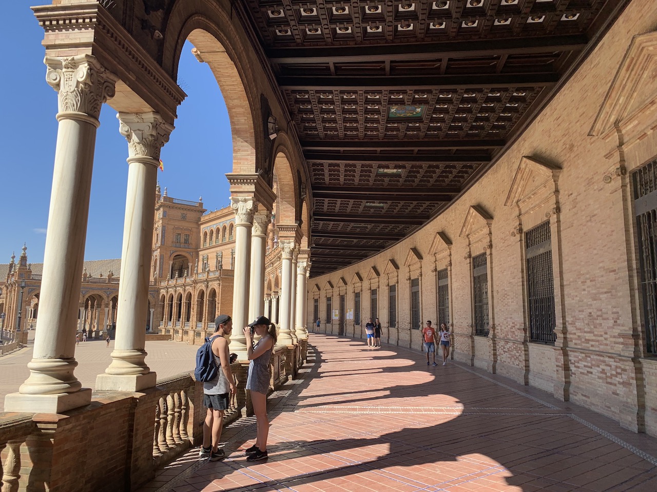 我覺得西班牙廣場完全是一個很看人的景點,是一個可以只花30分鐘解決但也可能是1.5小時那種的景點,如果細細欣賞,會發現橋上扶手的磁磚以及迴廊的圍欄皆有精美的彩繪,我最愛的即是照片中那湛藍搭配潔淨的白色,很像是一些被珍藏在博物館裡的花瓶或器皿。