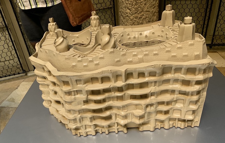 腳步向下挪到了以往的閣樓處,紅磚瓦的堆砌呈現像是鯨魚的肋骨亦或者是蟒蛇骨架,當初這裡被用作為洗衣間以及曬衣間,現作為高第作品的展廳,不僅介紹米拉之家,更有每一時期的作品模型及介紹。