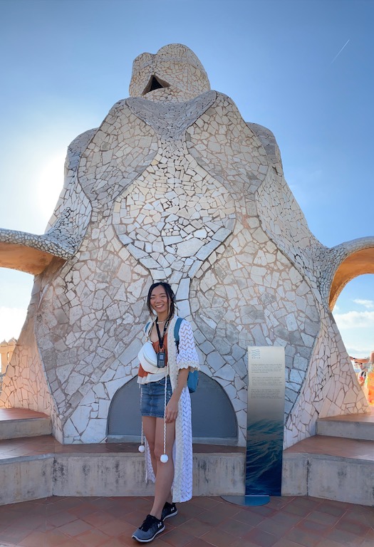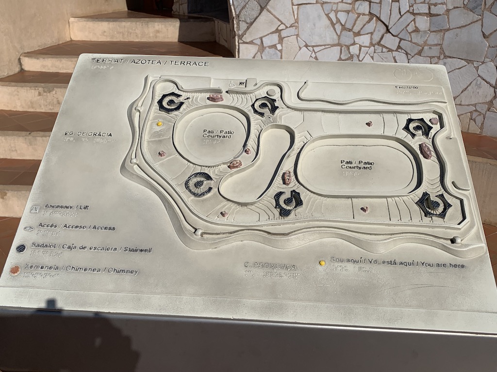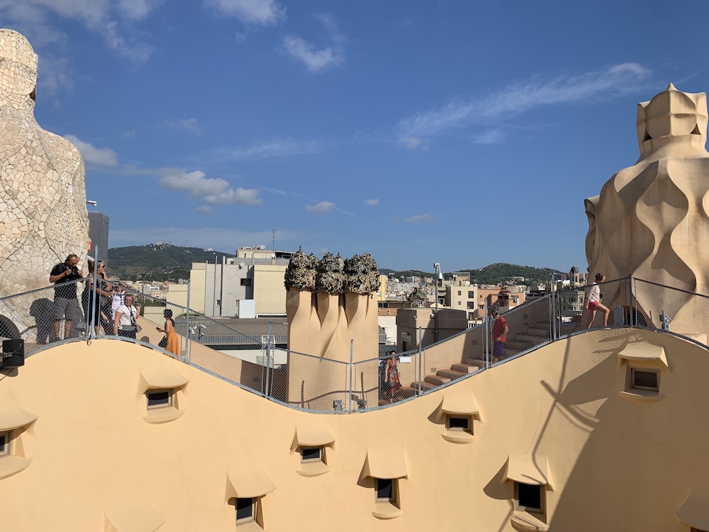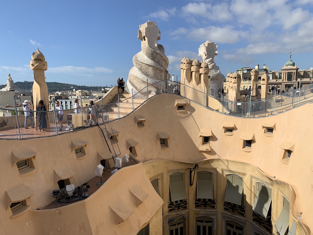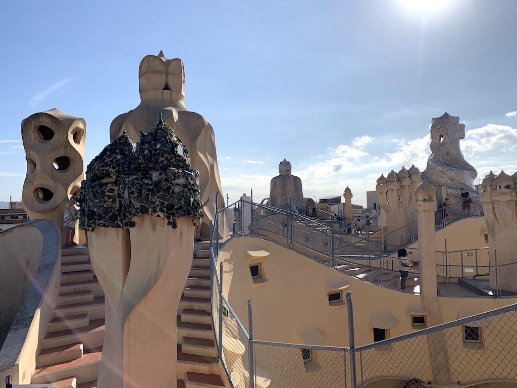 為什麼有名呢?因為建築天才高第,把那最醜陋的通風塔以及煙囪包裝到讓你不會聯想到!如果不特別說,應該會以為正走在一個雕塑公園之類的地方吧!