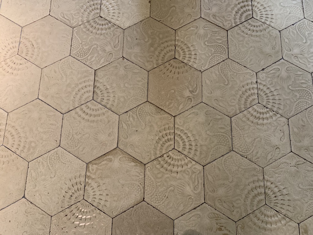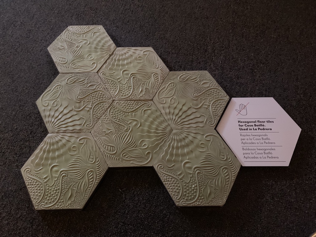 唯獨此地磚讓我駐足許久,它是來自高地另一作品的Casa Batlló,那螺旋的花紋好美呀!讓我想到有一陣子很流行的tote bag,有人用拓印方式在城市間的人孔蓋印了好多好美的手提布袋,我想如果這可以印上一個一定超漂亮!但我知道只是幻想啦!真的做了我應該會被抓起來哭哭!