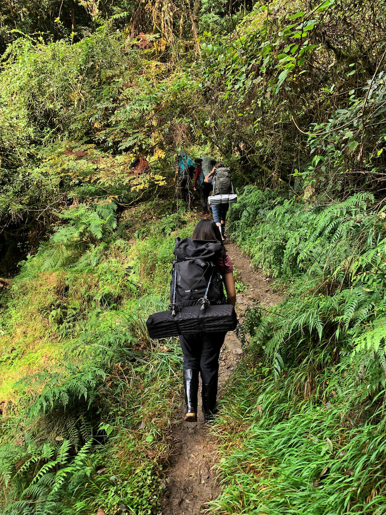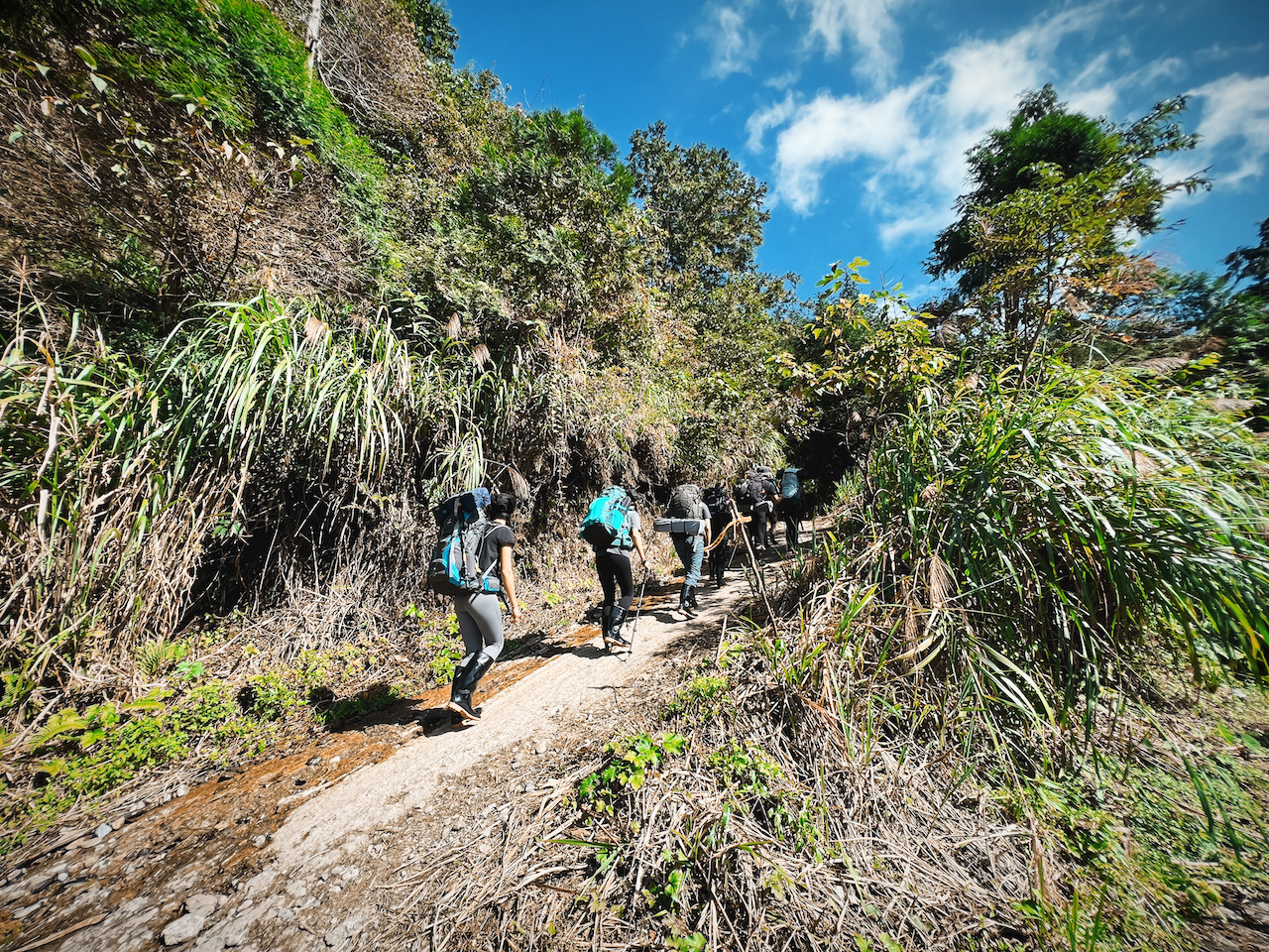 約莫半小時的腳程,會來到一個岔路口,選擇左邊向上走,道路會轉變成碎石子路、泥濘及些許溼滑的路段。