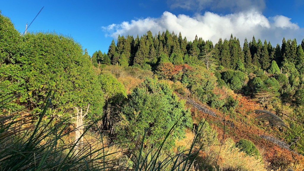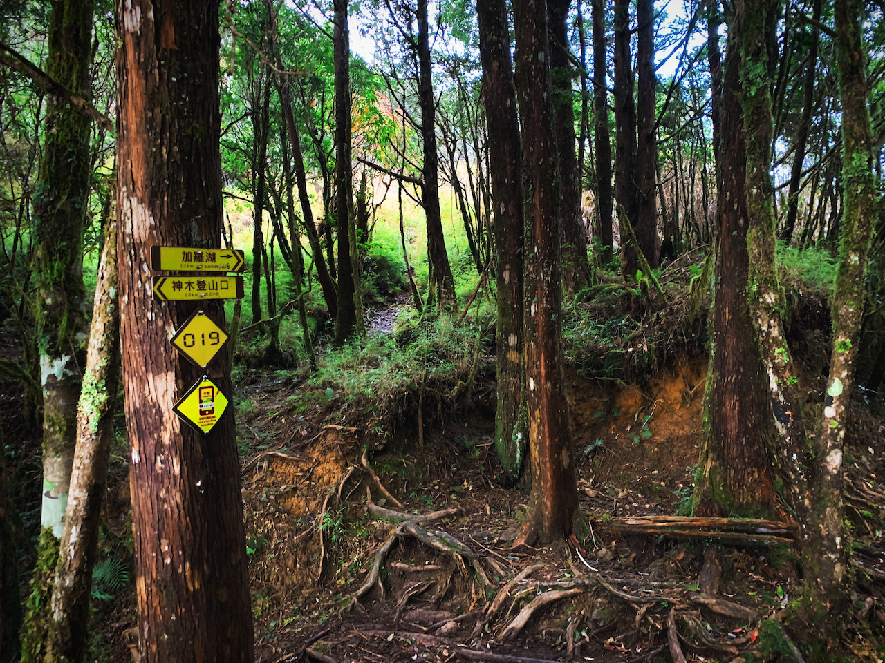 從神木登山口編碼000開始,前行的路上都有編碼標示,經過019平台通訊點前路徑都算清楚,只是在往前行的芒草箭竹區就真的比較需要留心,以免走錯路徑,尤其是自組隊在不熟路況太晚上山的路上,此區超容易迷失方向的(當天真的有隊伍天黑後才抵達就是在這區迷失方向的)。