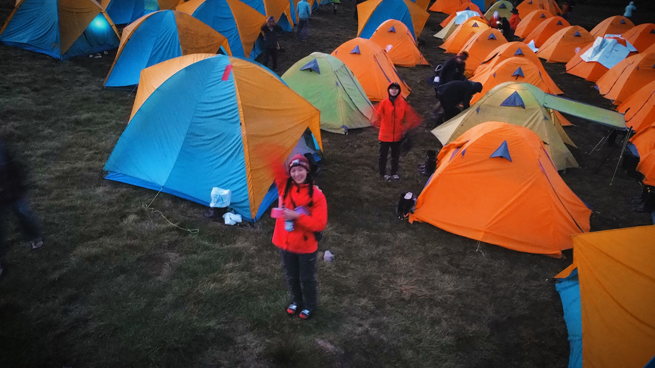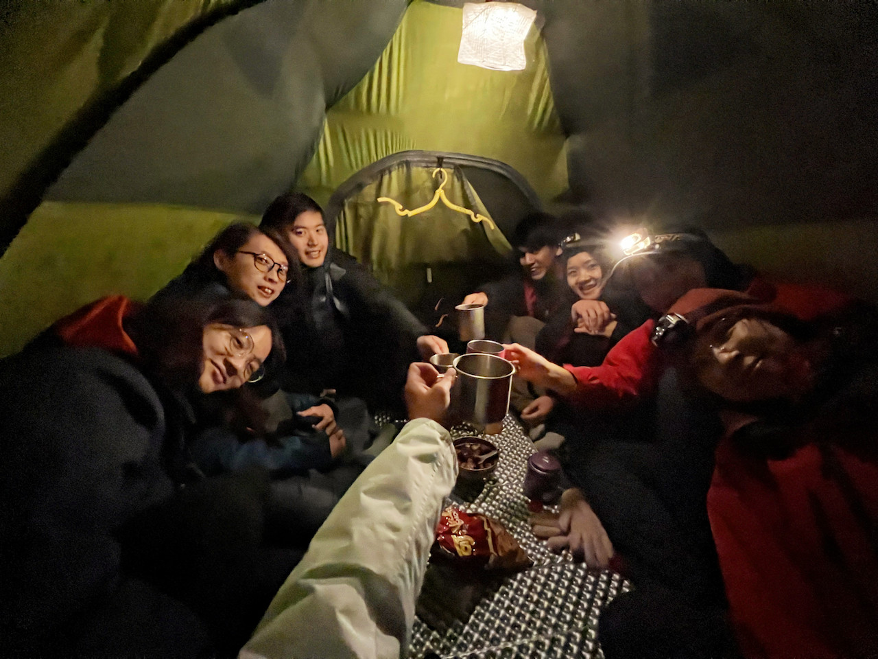 外頭的風冷的我們呼喊還在拍美照的攝影師,一起躲回帳篷裡取暖吃泡麵煮創意茶?