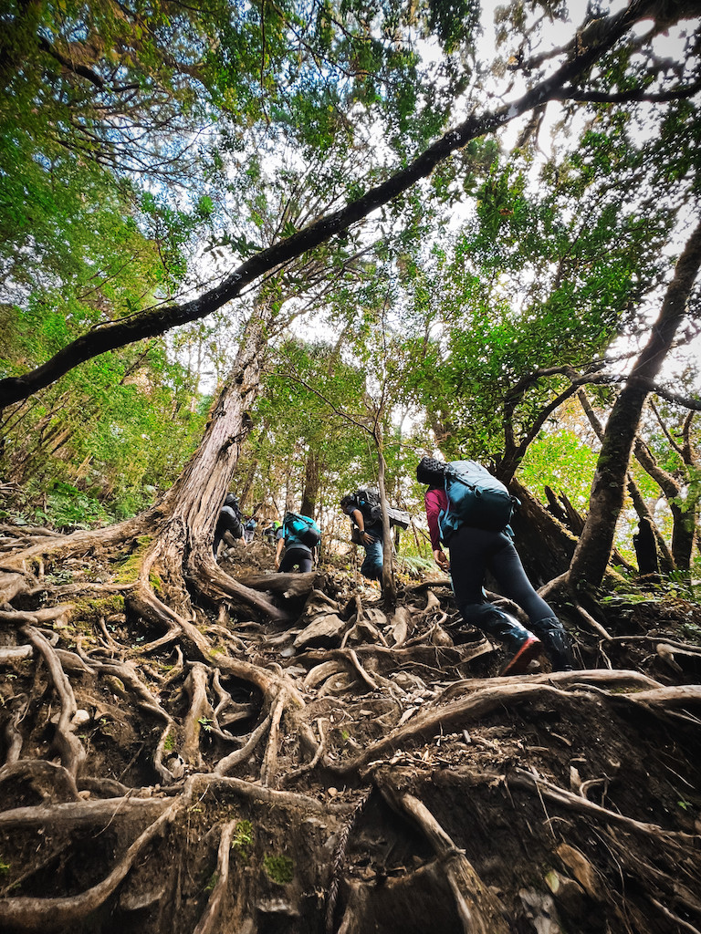 離開神木登山口後,路徑開始變成有很多盤纏的樹根,在行走上需更加留意溼滑跟踩點以免拐到腳。